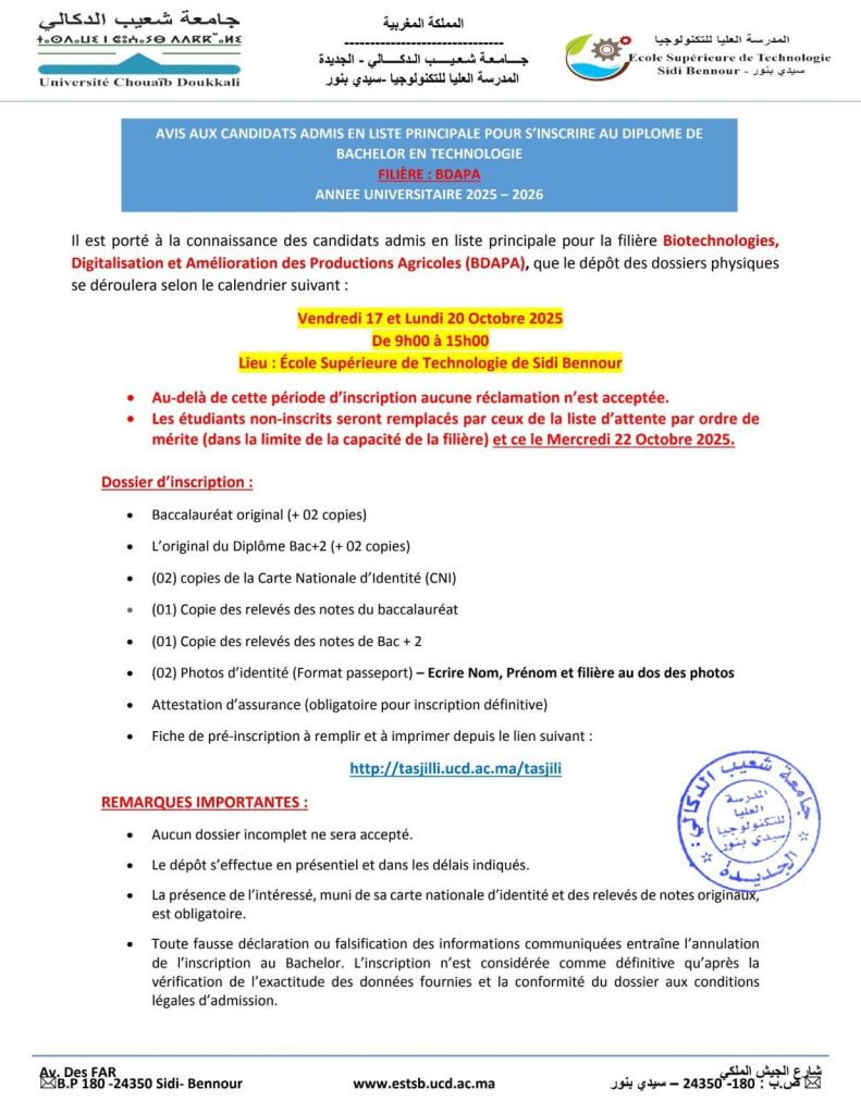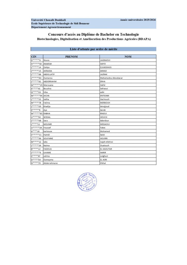 Concours d’accès au Diplôme de Bachelor en Technologie Biotechnologies, Digitalisation et Amélioration des Productions Agricoles (BDAPA)