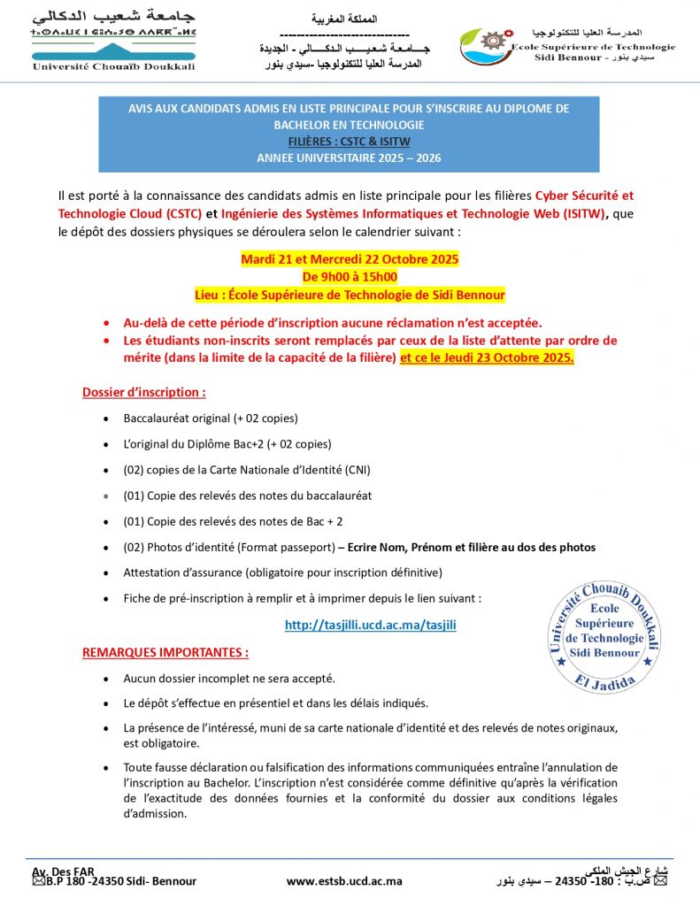 Liste des candidats Admis classés par ordre alphabétique et la Liste d’attente classée par ordre de mériteCyber Sécurité et Technologie Cloud (CSTC)